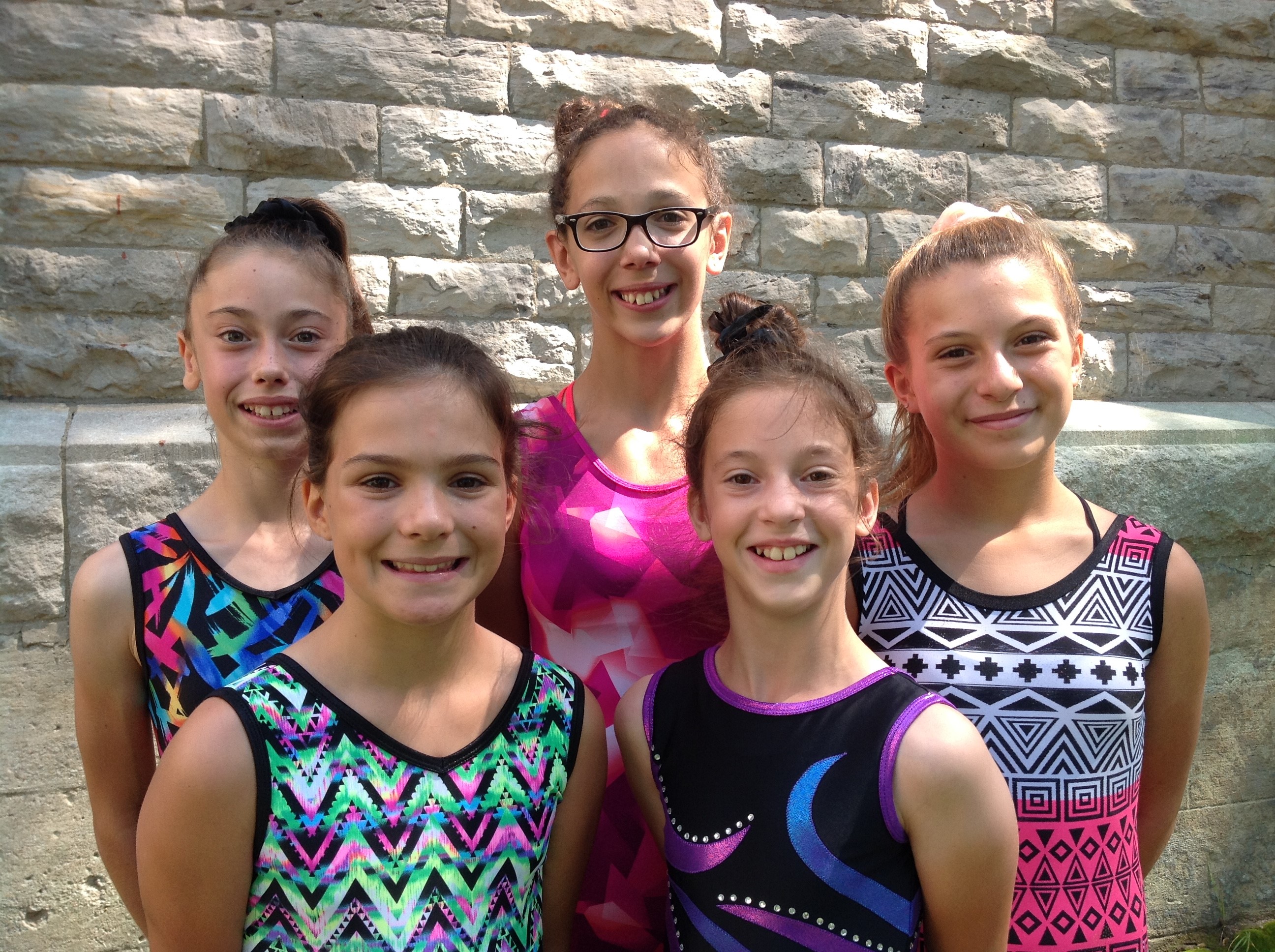 Cinq trampolinistes au camp d’entrainement Jeune-Élite