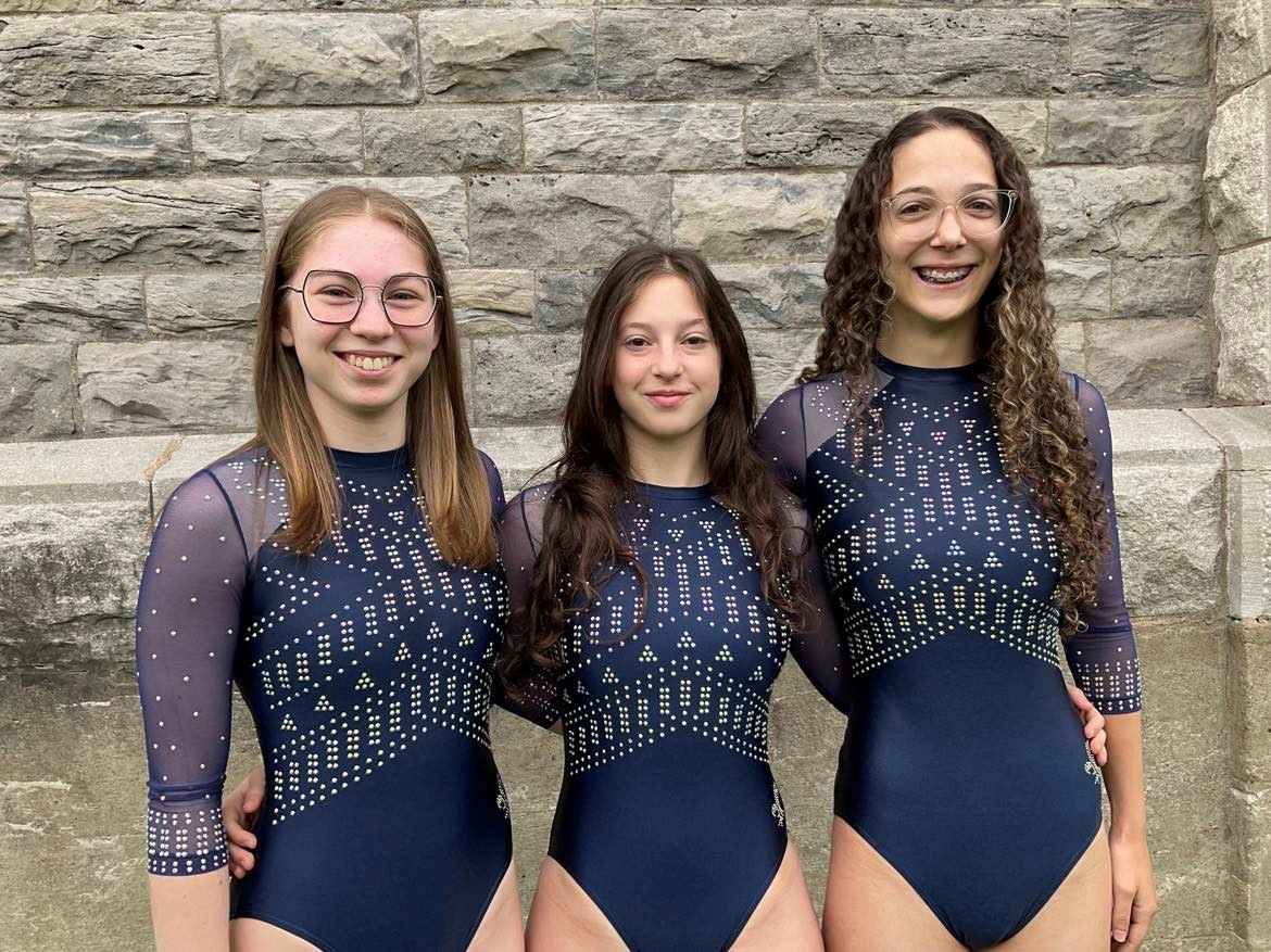 Trois trampolinistes au camp d’entrainement Jeune-Élite de Gymnastique Québec